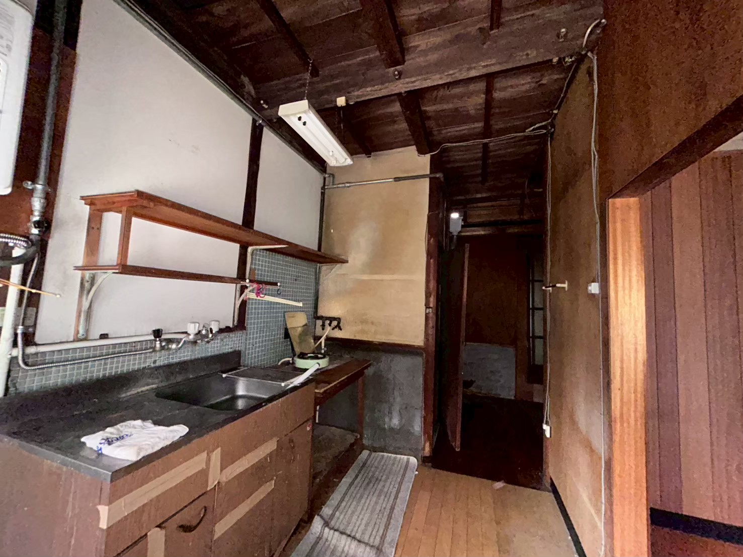 解体後は、壁・床・天井の下地状態を細かく確認し、劣化や不具合が見られる箇所については補修・補強を行いました。